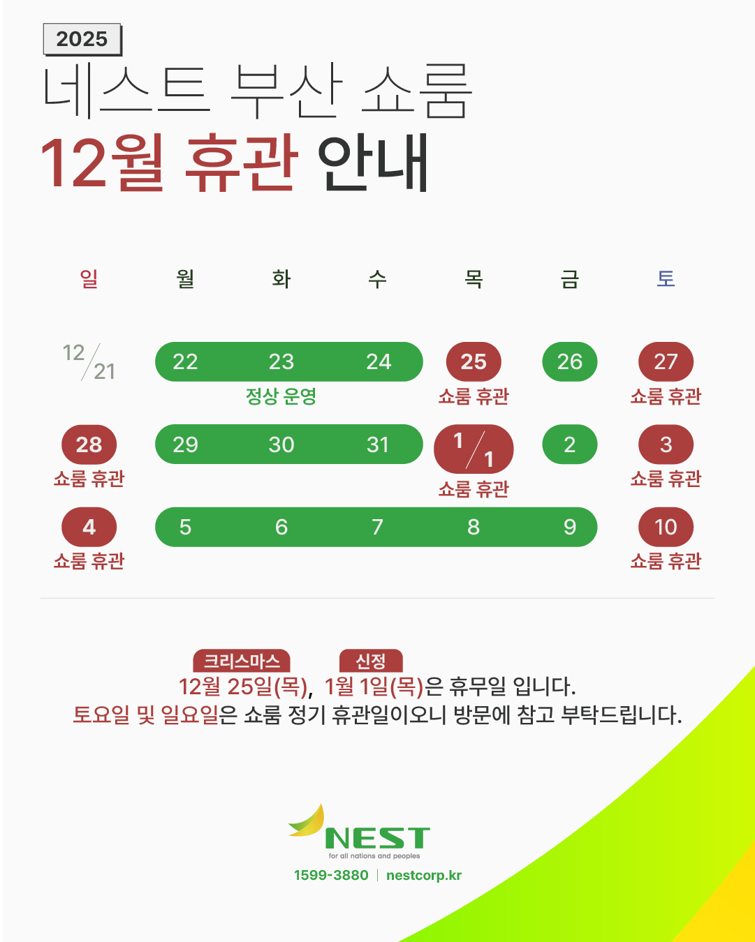 네스트 전시장 2025년 12월 운영 일정표